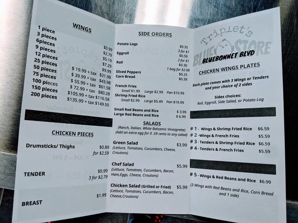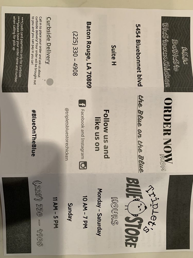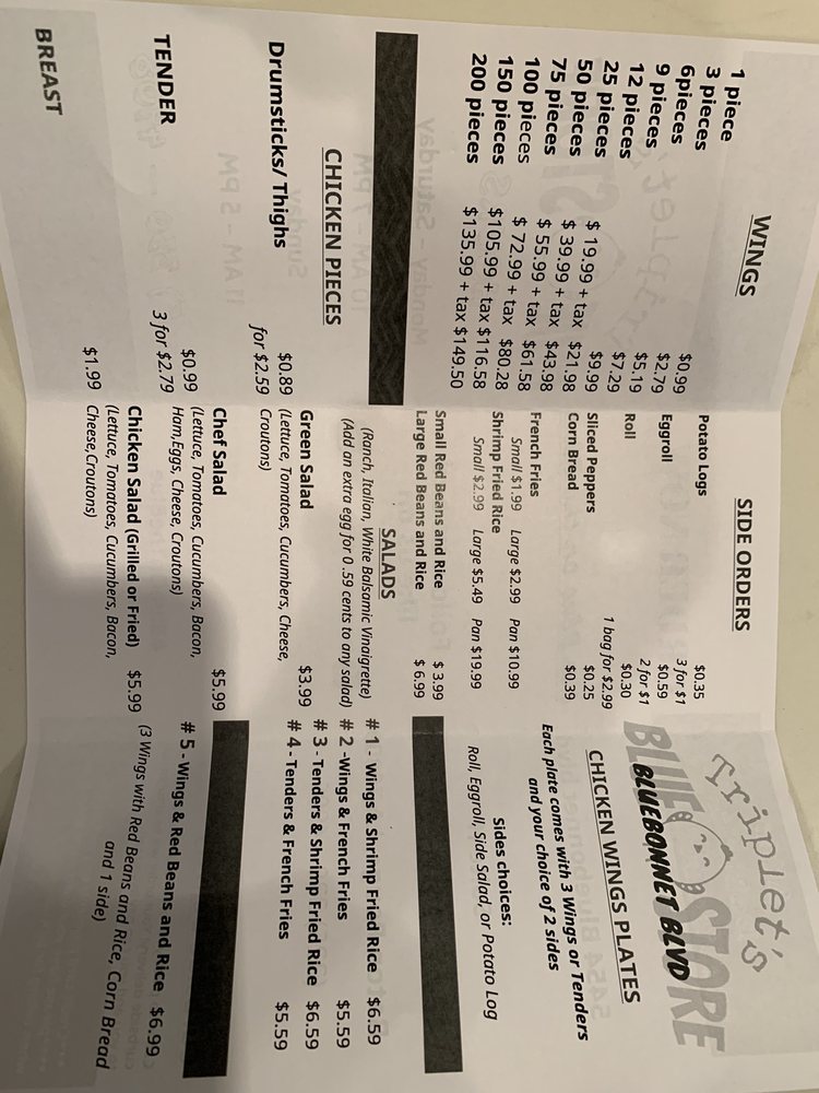 Welcome to Triplet’s Blue Store Chicken - Bluebonnet, the go-to destination for mouthwatering chicken wings in Baton Rouge! Located conveniently at 5454 Bluebonnet Blvd Ste H, this culinary gem offers a delightful menu centered around crispy chicken wings that are consistently praised for their flavorful seasoning.
